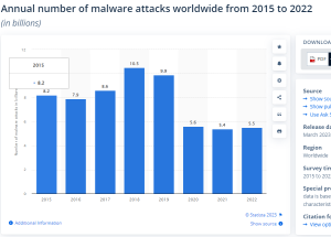 Petrosyan, A. (2023, 06 23). Annual number of malware attacks worldwide from 2015 to 2022(in billions). Retrieved from Statista: https://www.statista.com/statistics/873097/malware-attacks-per-year-worldwide/