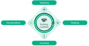Effective leadership in this context encompasses five key capabilities: Visioning, Relating, Inventing, Sensemaking, and Building Credibility. These